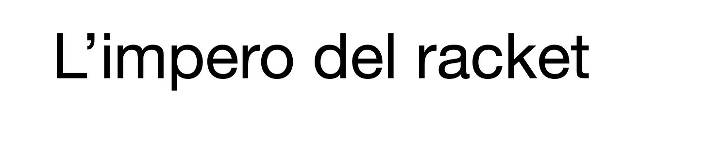 El mundo es cada vez más duro y hay que endurecerse para sobrevivir. El negocio de los rackets es la extorsión: protección a cambio de dinero. Hay rackets en el trabajo, en la política, en el barrio... La corrupción es estructural. No tener protección en un mundo despiadado equivale a morir.